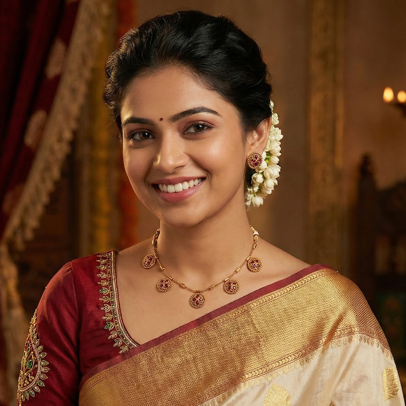 Crafted with a sophisticated antique matte gold finish, the design features five delicate floral motifs, each studded with deep ruby stones in a classic four-petal arrangement. The motifs are gracefully spaced with cylindrical gold accents, offering a lightweight and airy look that is distinct from heavier traditional jewelry.